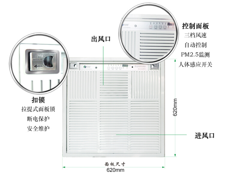 申瑞吸頂式空氣凈化器,內置高壓靜電場(電子集塵室)+層流過濾網+活性炭吸附+負氧離子功能,高效凈化清新室內空氣。